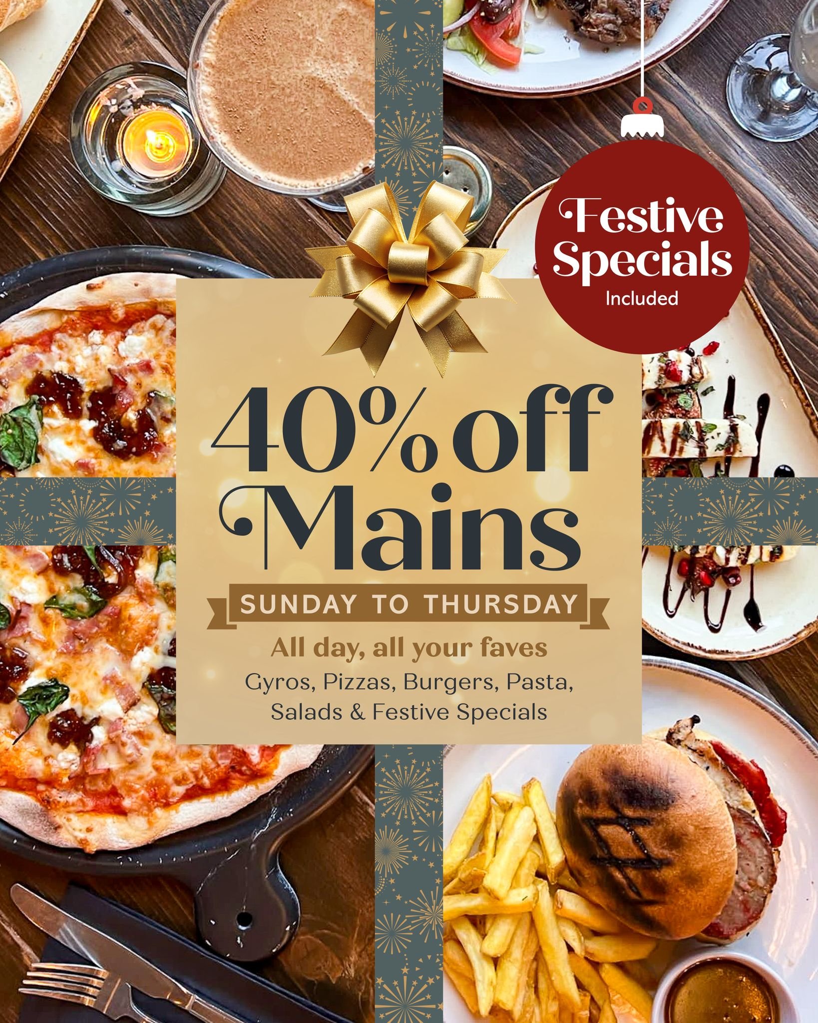 40% off Main Meals This December